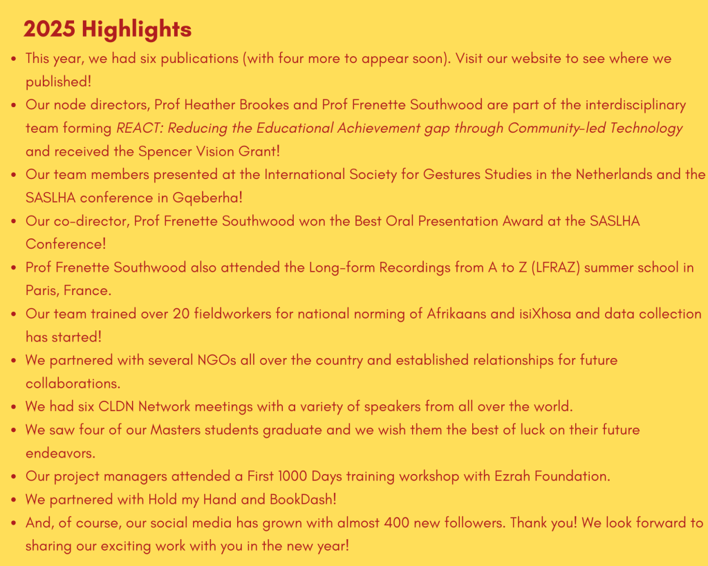 It was a wonderful, collaborative meeting of people who share the same passion: furthering child language development research in South Africa.